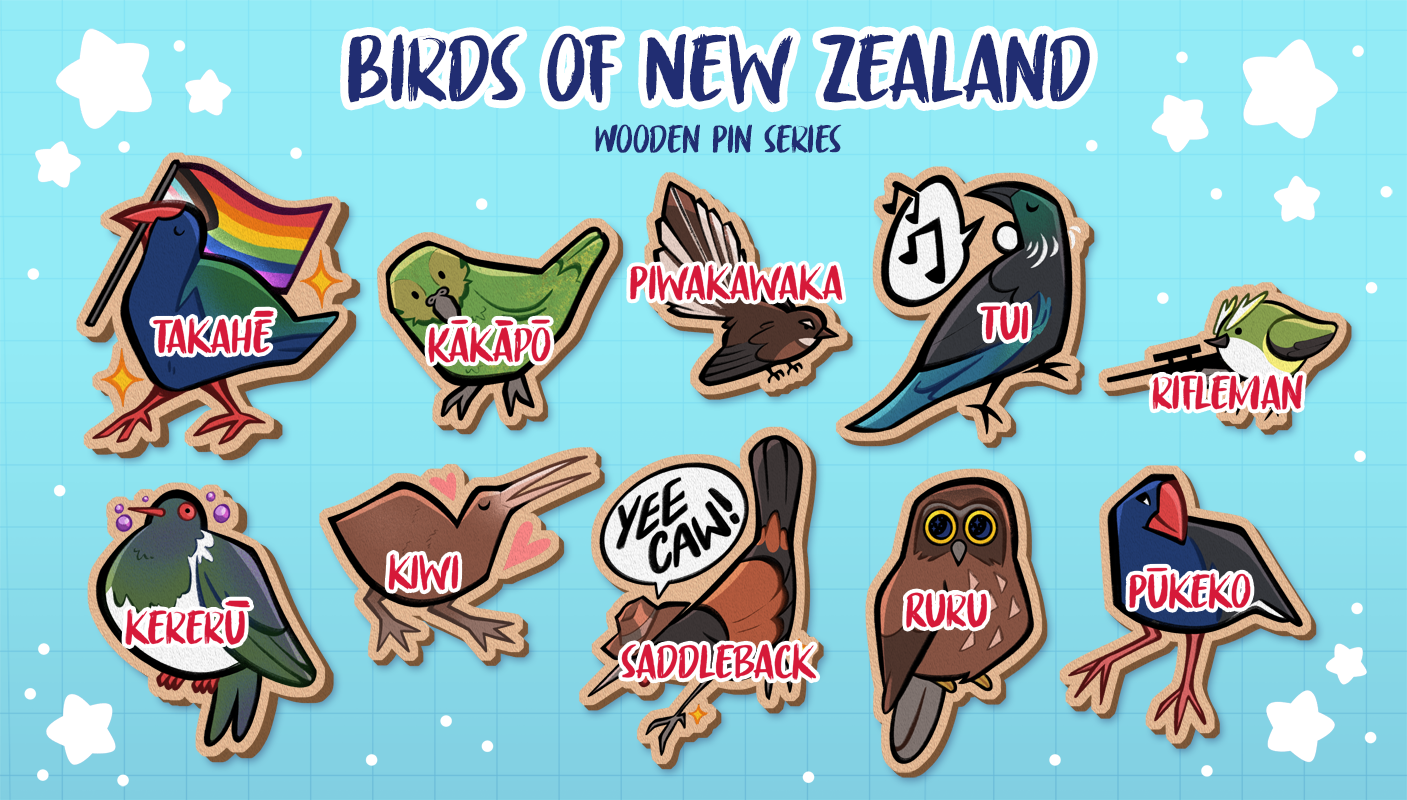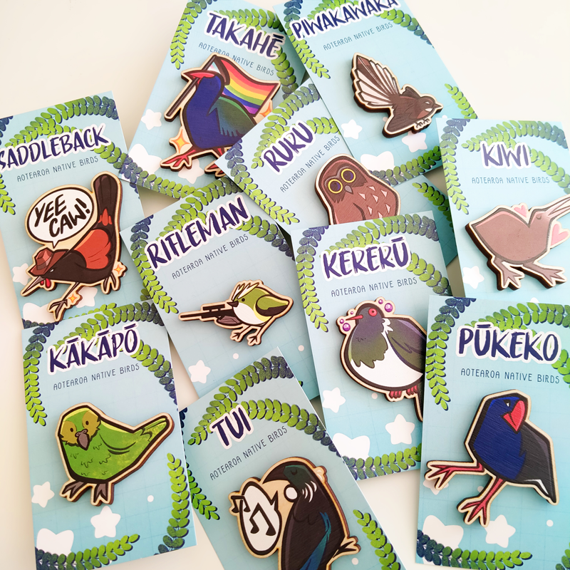 Birds of New Zealand pin series.